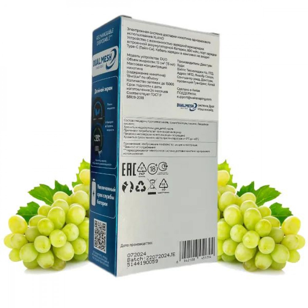 На складе Код товара: WAKA XLAND 15000 (Зелёный виноград)